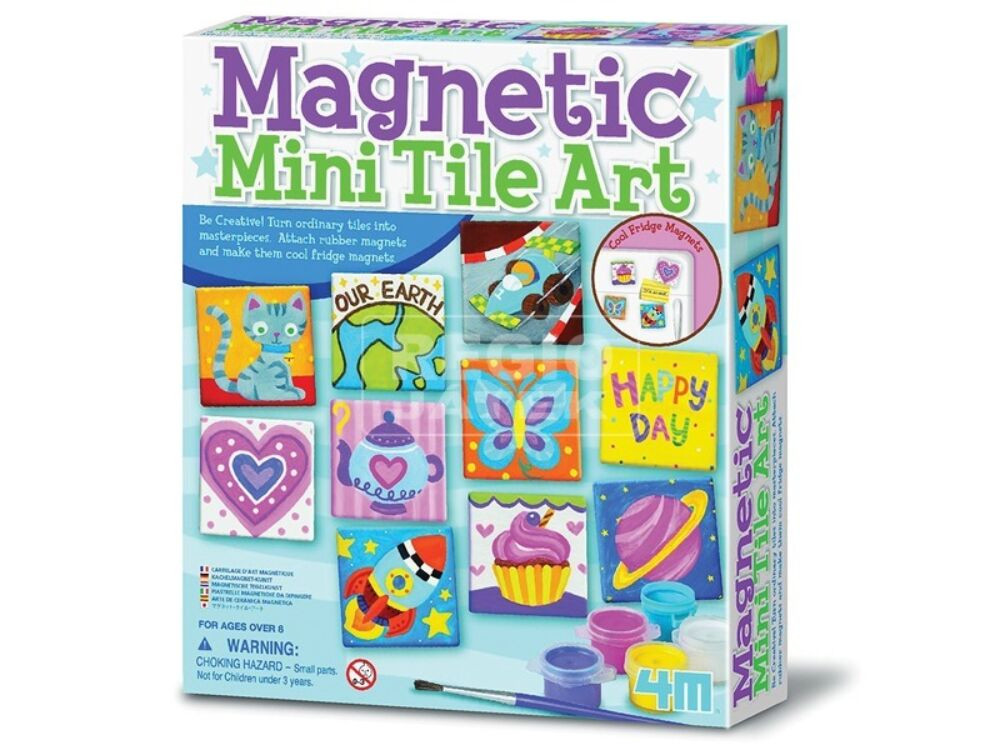 Változtasd át a hűtő falát egy remekművé! A 4M mágneses csempe művész készletben lévő fehér gumilapokat ki kell festened, és egy mágneses négyzetet ráragasztva már kész is van a dekoratív hűtőmágnes! A fantáziádat szabaddá engedve egyedi ötleteidet, megálmodott képeidet meg tudod valósítani hűtőmágneseken! Ha már elég profinak érzed magad, akkor tegyél egymás mellé több hűtőmágnest, és nagy képeket is tudsz készíteni! A 4M mágneses csempe művész készlet 10 darab, 4,5 cm-es élhosszúságú hűtőmágnest tartalmaz.