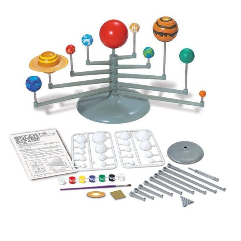 Szereld össze saját planetárium modelled, és fesd le fluoreszkáló festékkel! A 4M naprendszer planetárium készlet egy 30 cm-es átmérőjű, sötétben világító Naprendszer modellt tartalmaz, amit saját magad tudsz összeállítani. Először állítsd össze a forgó állványt, majd pattintsd össze a fehér bolygó elemeket, tedd a gyűrűt a Szaturnuszra. Ezek után már csak ki kell festened a bolygókat, helyükre tenni, és amelyik égitest a legszimpatikusabb, azt még foszforeszkáló festékkel is be tudod kenni. A 4M naprendszer planetárium készlet tartalma: műanyag bolygók, foszforeszkáló festék, ecset, színes festékek, forgókarok, állvány alap, fém bolygótartó rudak, csiszolópapír, Szaturnusz gyűrű, használati utasítás.