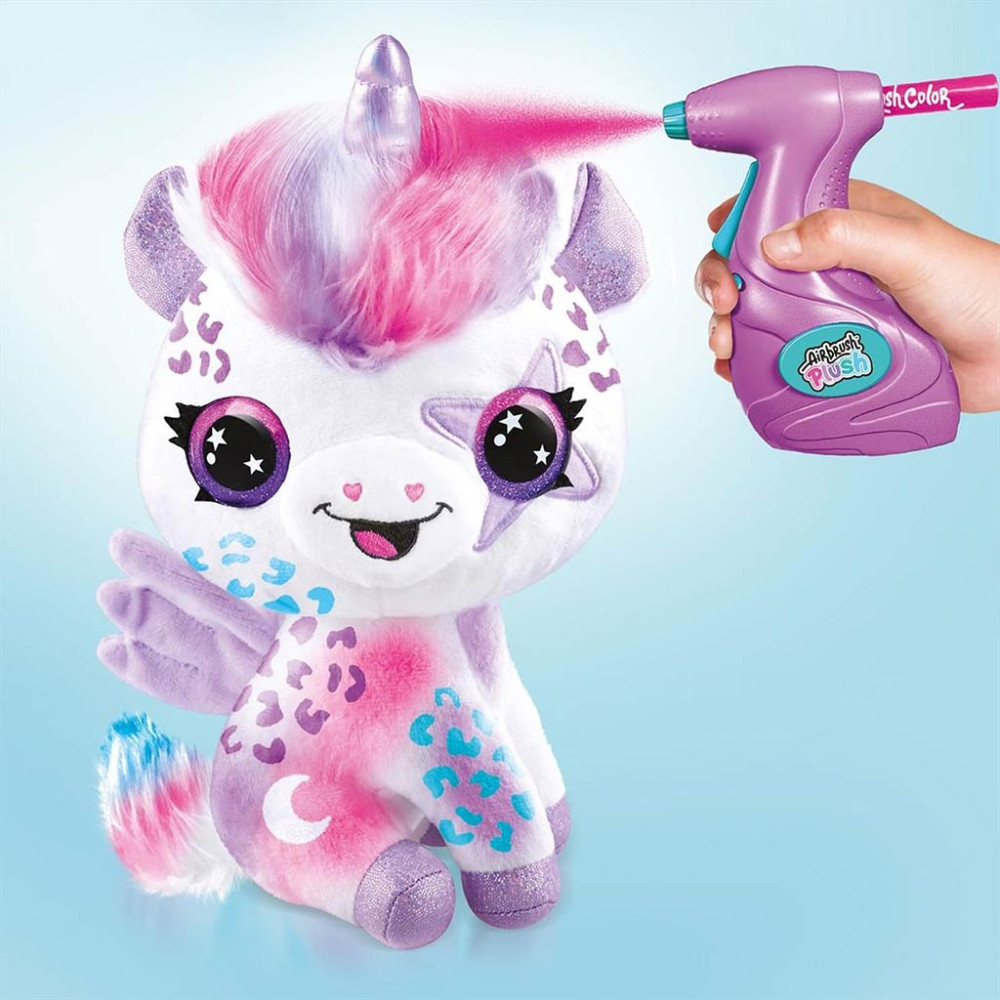 Imádod az unikornisokat? Válaszd a Style Ever Airbrush színezhető plüss unikornist, akinek a füle, szarva és tappancsai csillogóak, és a pegazusszárnyai világítanak a sötétben. A szettben pedig rózsaszín, lila, és kék festéseket találsz. Használd a stencil sablonokat, és válassz több tucat minta közül, akár az egész plüss bundát beszínezheted, miközben a minták maradnak fehérek.