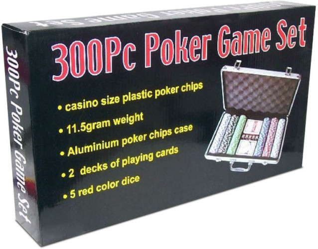 Játsszatok pókert elegáns alumínium dobozos készlettel! Az Alu bőröndös póker készlet 300 darab zsetonnal mindent tartalmaz, ami a szenvedélyes pókerezők számára elengedhetetlen! A csomagban két pakli kártyát, osztó gombot, 5 darab dobókockát és 300 darab zsetont találtok, amikkel Texas Hold Em, vagy a póker kártyajáték másfajta változatait játszhatjátok. a zsetonok 30 mm átmérőjűek, 4 gramm tömegűek, pont mint az igazi kaszinóban használt zsetonok. Az Alu bőröndös póker készlet 300 darab zsetonnal csomagolási méretei: 41 x 7 x 24 cm.