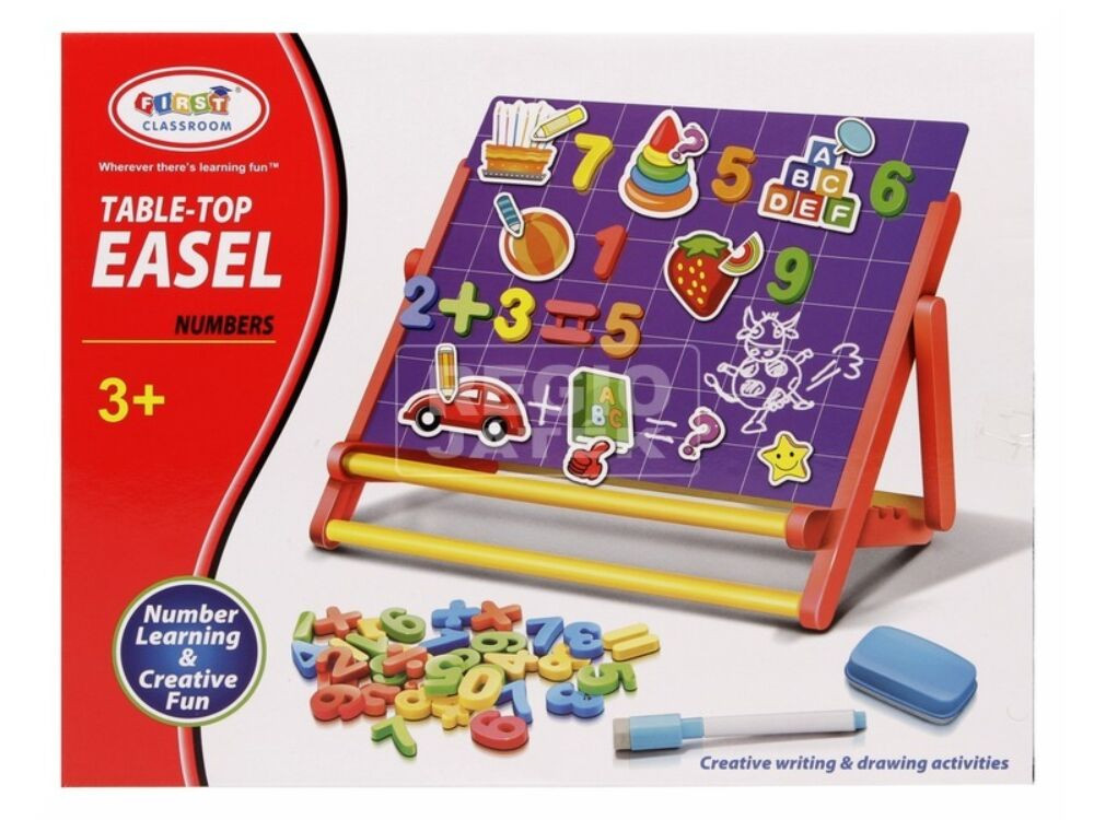Rajzolj és számolj a mágneses rajztáblán! Az Asztali mágneses rajztábla számokkal egykeretes színes tábla, aminek egyik oldalára rajzolni, a másik oldalára írni tudsz. A csomagban lévő mágneses számokkal és műveleti jelekkel fejleszteni tudod a matematikai tudásod, a tábla mindkét oldalára színes filctollakkal tudsz rajzolni. Az Asztali mágneses rajztábla számokkal készlet egy fehér filctollat és egy szivacsot is tartalmaz. Csomagolás méretei: 33 x 4 x 26 cm.