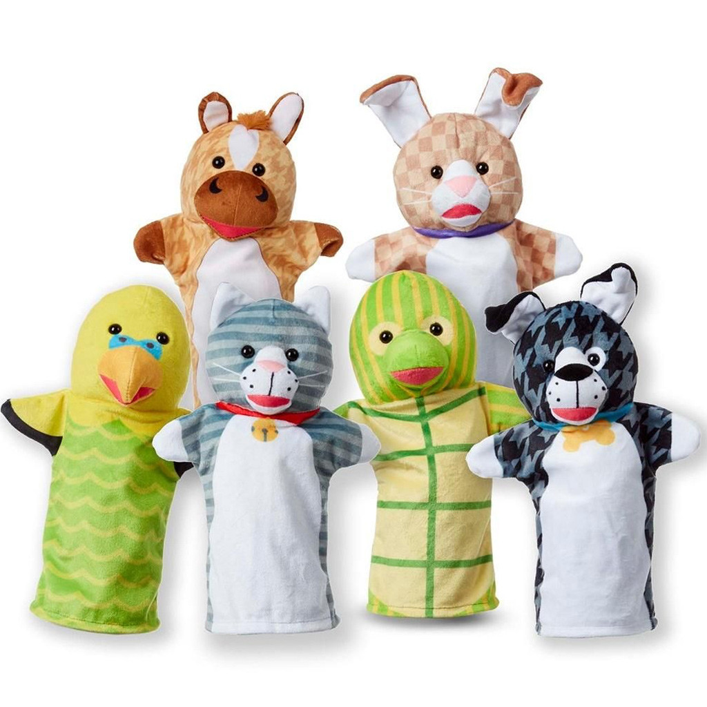 Tartalmaz macska, kutya, ló, papagáj, teknős és nyúl kézi bábokat