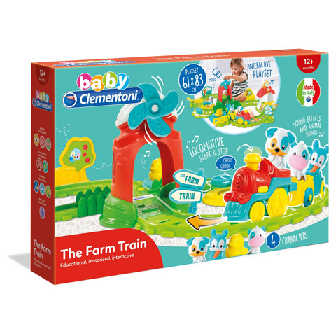 Clementoni A Baby interaktív színes kis-vonat szett a Clementoni tól az egyik legcsodálatosabb ajándék lehet a picik számára. Ez a különleges játék biztosan tetszeni fog gyermekednek, hiszen élénk színeivel és az érdekes hanghatásaival rögtön felkelti a gyerekek figyelmét. A szett ben egy 3 kocsiból álló vonat található, ami a farmon közlekedik körbe-körbe. A szélmalom, sorompó, kapu és táblák mellett elhaladva különböző hangok és dallamok szólalnak meg, ami rendkívül szórakoztató lesz a gyerekek számára. A kis vonat utasai a tanya aranyos állatai lehetnek, akik beültethetők a vonat üléseibe. A Baby interaktív színes kis-vonat ot a mozdony elején lévő gomb megnyomásával lehet elindítani, illetve megállítani. A gombot 10 másodpercig lenyomva tartva csendes üzemmódba kapcsolható a játék. A nagyszerű szórakozás mellett a játék remekül fejleszti a motorikus és kognitív készségeket, valamint jó hatással van az érzékszervek fejlődésére is. Baby interaktív színes kis-vonat szett farm jellemzői: