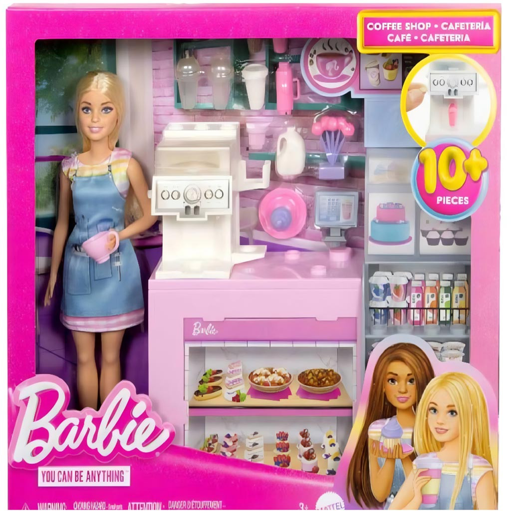 Barbie kávézó játékszett A fiatal álmodozók felszolgálhatják a város legjobb kávéját a vendégeknek.