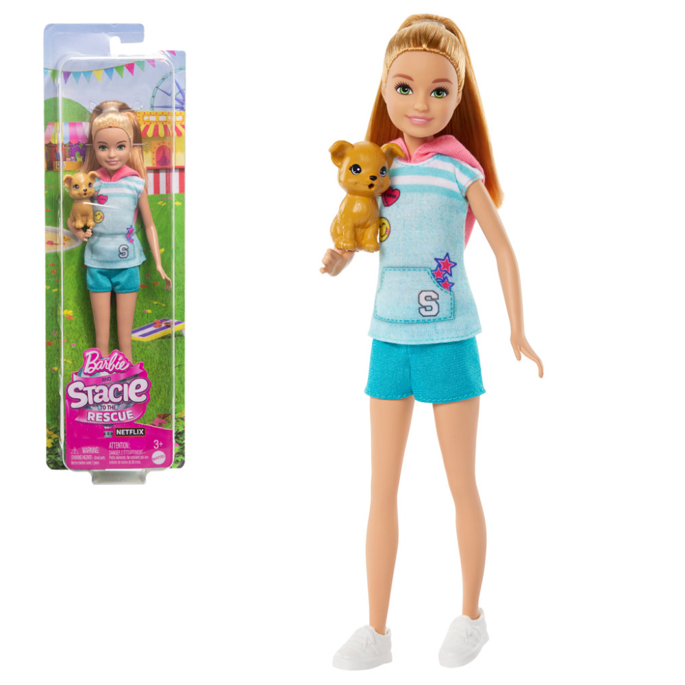 A 2024-ben a Netflixen megjelenő legújabb Barbie animációs film, a Barbie and Stacie to the Rescue ihlette Stacie baba csinos, vidám szimbólumokkal díszített kapucnis pólóban, egyszínű, ugyanakkor stílusos rövidnadrágban és kényelmes tornacipőben érkezik a gyerekek szobájába. A készletben a baba mellett egy imádnivaló kiskutya figura is helyet kapott. A szettel a gyerekek visszajátszhatják a mesefilm jeleneteit, de akár újakat is kitalálhatnak, amely során fejlődik képzeletük, fantáziájuk és kommunikációs készségük.