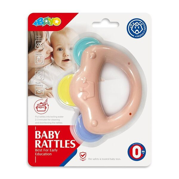 Baba rágóka csörgővel, finoman masszírozza a fogakat a fogak növekedésének időszakában. Puha és tartós anyagból készült, könnyen tisztítható. A különleges formájának köszönhetően a baba könnyen meg tudja fogni. 0 hónapos korú gyermekek számára készült.