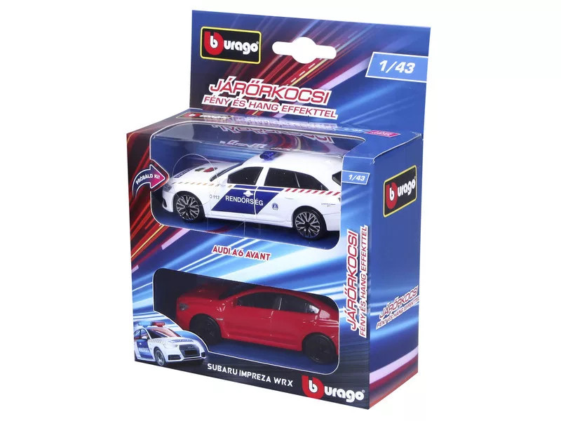 Készen állsz egy elképesztő, izgalmakkal teli üldözéses kalandra? Melyik kocsiban ülnél szívesebben? A rendőrében, vagy éppen ellenkezőleg, az üldözött bűnözőében? Mindkét kocsi fantasztikusan gyors és vagány, szerinted az Audi A/6 Avant rendőrautó utoléri a Subaru Impreza-t? A Bburago kifejezetten gyerekeknek készült modell autó szettjével hamar a végére járhatsz a kérdésnek, de ne feledd, nem csak a gyorsaság számít! Az ügyesség és a taktika is kulcsfontosságú lehet!