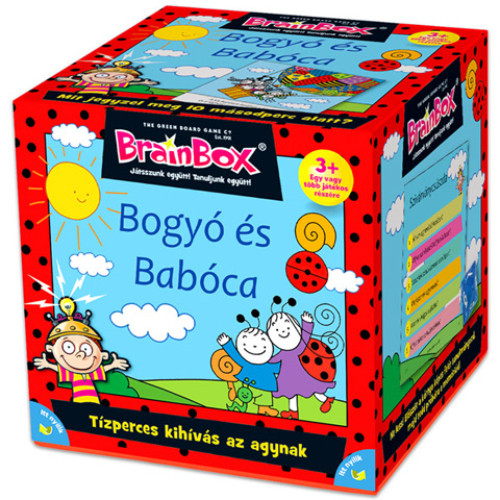 A Brainbox segítségével felelevenítheted kedvenc mesefilmed, a Bogyó és Babóca jeleneteit. Csak a megfigyelőképességed és a memóriád kell hozzá! Koncentrálj és jegyezz meg minél több információt 10 másodperc alatt a kihúzott kártyán lévő képről, majd dobj a kockával és válaszolj helyesen a kidobott szám szerinti kérdésre! Ha jó megfigyelő vagy a legtöbb kártya nálad landol, és a játékot megnyered! A termék az Ország játéka 2017 verseny Társasjáték kicsiknek kategória közönségdíjas győztese! Javasolt életkor: 4 – 8 éves korig Kiknek ajánlott: Lányoknak