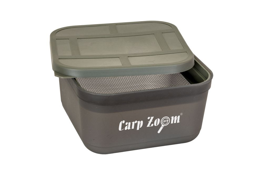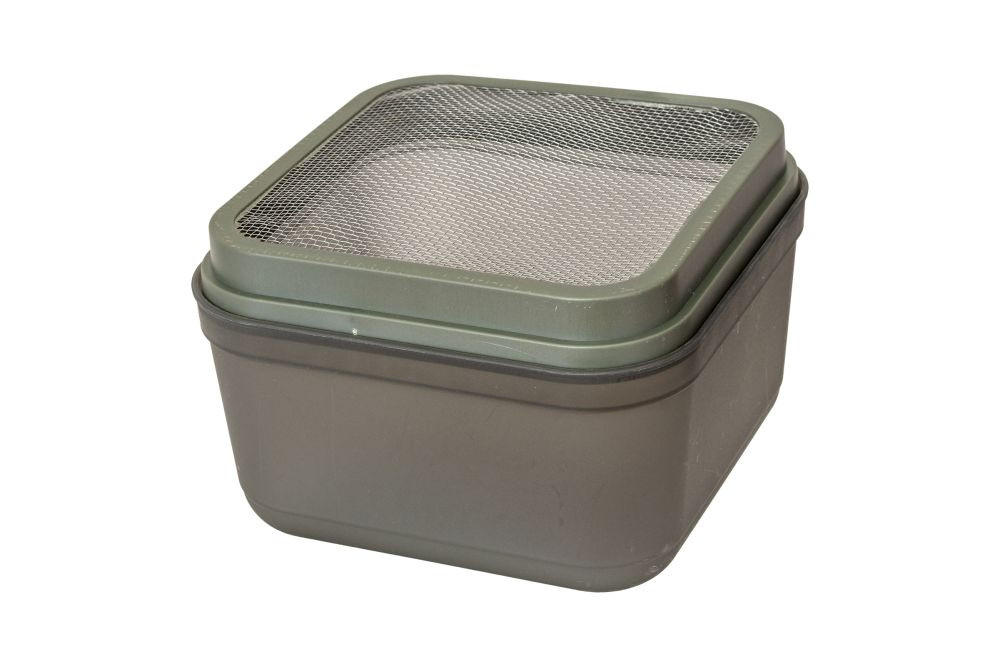 Három részből – egy nagyobb dobozból, középső szitából és fedélből – álló csalis doboz. Mérete 16x16x9 centiméter, így ideális élő és szemes csali tárolására is. A szita rész 3 centiméter mély, így alkalmas a csali lecsöpögtetésére is. Fordítva a dobozba helyezve perforált tetőként funkciónál, ezáltal szellőztetve, frissen és életben tartva a benne lévő csontit vagy pinkit. Praktikus összeállítás, melyet finomszerelékes és békéshalas horgászoknak ajánlunk.