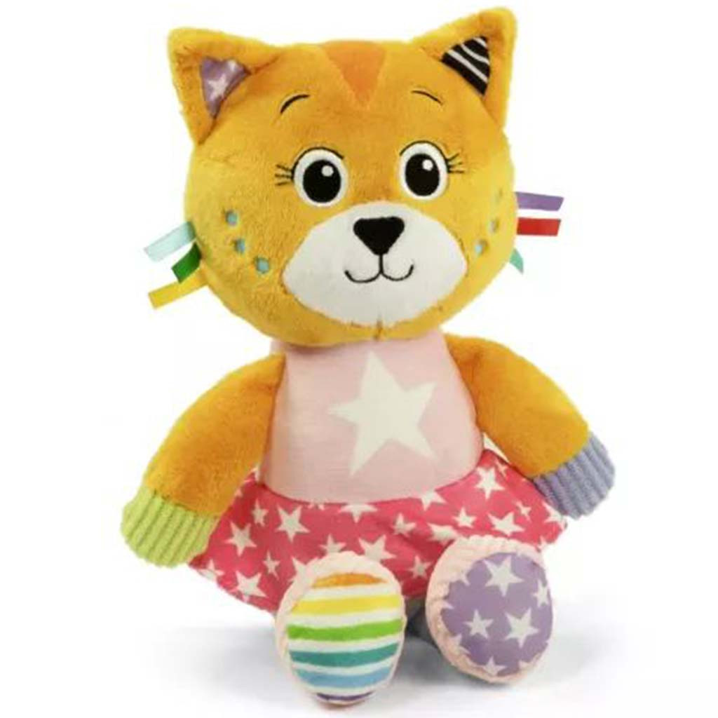 Ez a puha cica különféle anyagokból készül, különböző textúrákkal, hogy stimulálja a baba multiszenzoros fejlődését.