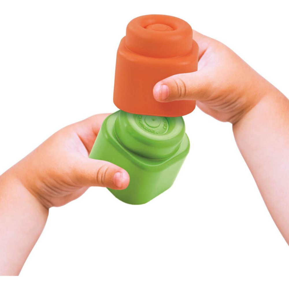 A Clementoni – Clemmy Készségfejlesztő labda, puha építőkockákkal (17315) 4 db puha kockát tartalmaz.