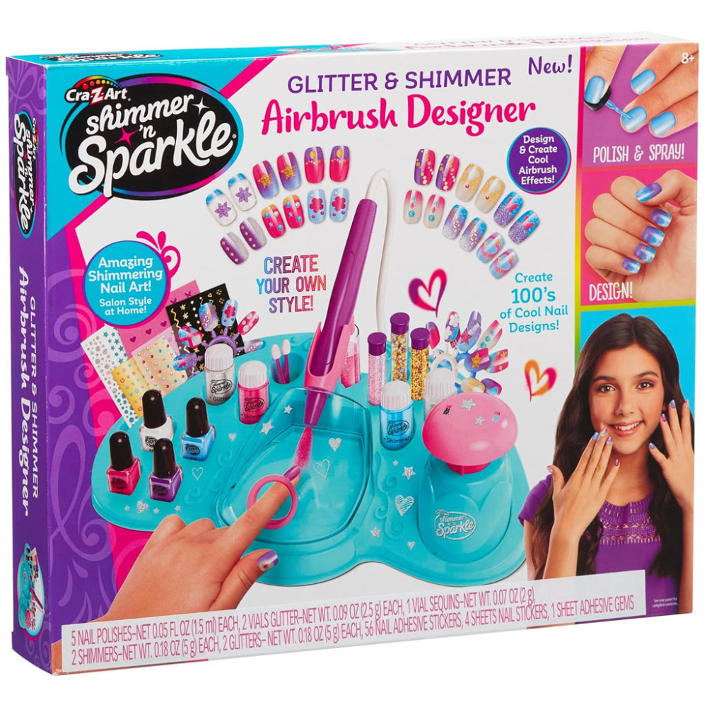 A Cra-Z-Art Shimmer ‘n Sparkle Festékszórós manikűrszalonjával a jövő manikűrösei trendi, különleges és persze színes körmöket készíthetnek maguknak vagy a divatos megjelenésért rajongó barátnőiknek. A legcsillámosabb eredmény elérésének érdekében ráadásul egy nem mindennapi eszközzel, festékszóróval készíthetik el a körömkreációkat.