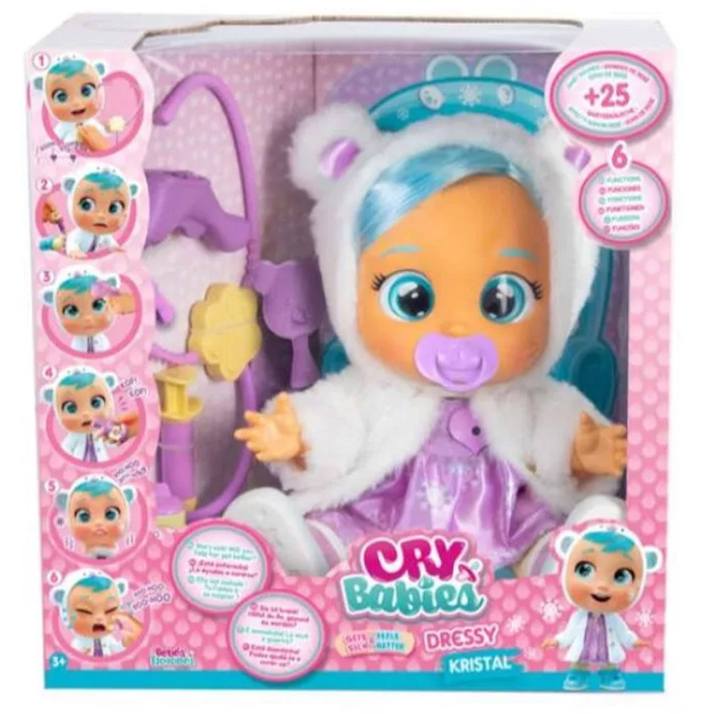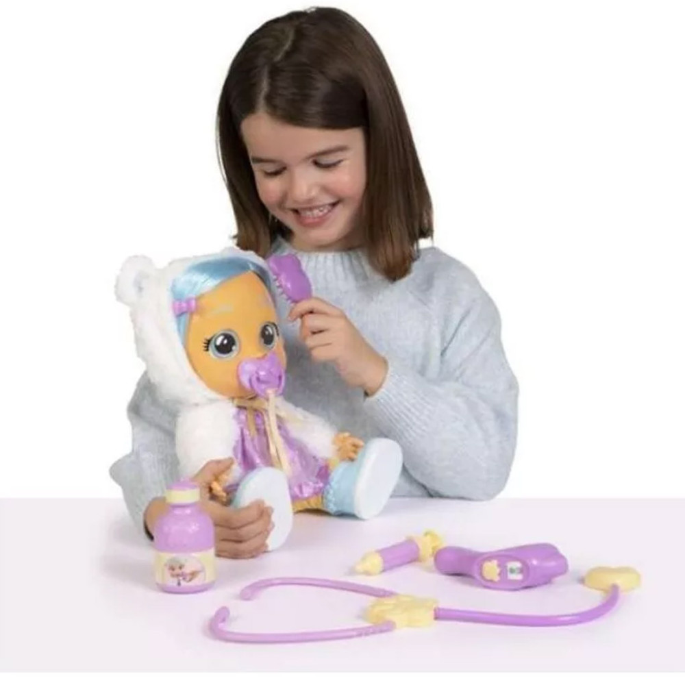 Kristal ráadásul beteg is, úgyhogy extra gondoskodásra, figyelemre és törődésre van szüksége. A dobozban orvosi eszközök is találhatók, így a kis doktorok meggyógyíthatják kedvenc babájukat.