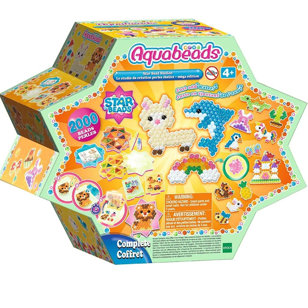 Az új Aquabeads csillag formájú gyöngyökkel kápráztatja el a lányokat, fiúkatt 2000 darab gyönggyel – 24 különböző színben és sablonokkal. Csillogjanak a figurák új formában, a képzeletnek nincs határa.