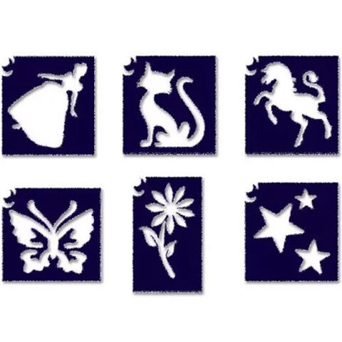 Csodásan csillogó csillámtetoválásokkal dobhatod fel megjelenésed, melyhez remek kiegészítő lesz ez a sablon szett. Az öt különböző sablont tartalmazó készlet tetoválásait egyszerűen csak fel kell vinned a bőrödre, majd a színes csillámaiddal teleszórni azokat. A kirajzolódó minta tetoválásként tűnik majd fel a bőrödön, ami igazán látványos lesz. Neked melyik tetoválás minta lesz a kedvenced?