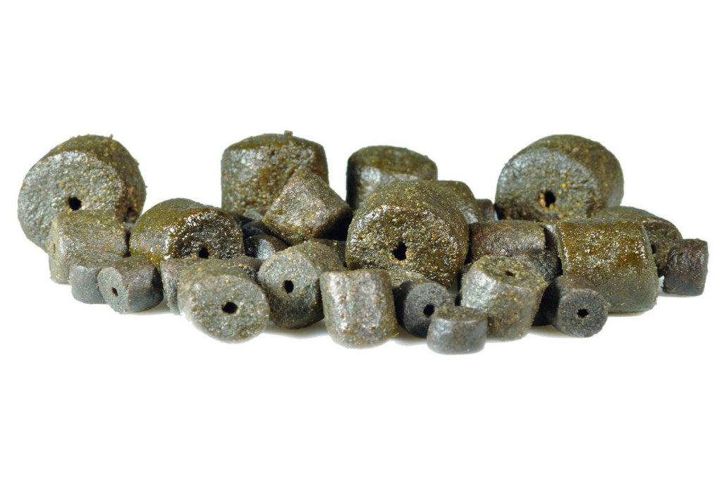 Valamennyi mérete átfúrt, így könnyen horogra rögzíthető. Összetevői révén folyamatos táplálkozásra készteti a halat.