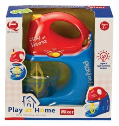 Készíts turmixokat, könnyebb tésztákat a konyhai keverőgéppel! Az Elemes konyhai keverőgép egy kék-piros robotgép, amivel tojást tudsz felverni, vagy lazább szerkezetű krémeket is el tudsz készíteni. A robotgép automata és kézi üzemmódban is használható, automatán folyamatosan forgatja a keverőszárakat, míg kézi vezérlésnél meg kell nyomni a tetején a gombot, hogy működjön. Az Elemes konyhai keverőgép használat közben fényt is ad ki magából. A játék 2 darab AA ceruzaelemmel működik, a csomagolás az elemeket tartalmazza. Méretek: 16 x 7 x 18 cm.
