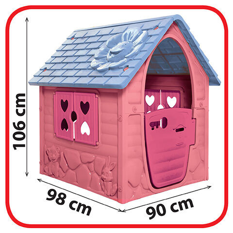 Első játék házikónak tökéletes választás gyermekednek, kiváló méretekkel rendelkezik, nem nagy de nem is kicsi. A játék házat könnyedén össze tudod szerelni illetve szétszerelni ha szükséges. Ideális választás 2 éves kortól első játék házikónak. A kicsik ki tudnak alakítani egy saját kis világot a játék házikó belsejében, maguknak tekinthetik a tulajdont és a helyszínt. Babázhatnak is bent, vagy egy kis konyhát is be tudnak vinni kiegészítőként, de lehet ez egy fagyis bódé a nagy nyári melegekben, gyakorlatilag a fantázia szabhat csak határt ennek a játékház kihasználhatóságának. 2 ablaka 1 ajtaja és egy hátsó bebújós része is van a játékháznak. Még kedvesebbé teszi a tetőn lévő mosolygós virág motívum ezt a kis házikót. 2 éves kortól ajánlott.: hossz 98 x szél 90 x mag 106 cm.