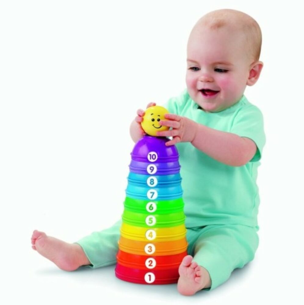 Minden darabja más színű, méretű és számú, ami fejleszti a korai felismerő képességet. Nevető, csilingelő labda lapul mindegyik csésze belsejében, vagy tehető az egész építmény tetejére!