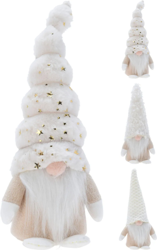 Varázsold otthonodba a karácsony meghittségét ezzel a bájos, 15 x 32 cm-es Gnome figurával! A pihe-puha anyagból készült, hosszú sapkás manó aranyos, mesébe illő megjelenésével azonnal ünnepi hangulatot teremt. A hófehér, csillagokkal díszített sapka és a bozontos szakáll igazi téli varázst sugároz, miközben a meleg bézs és fehér árnyalatok elegánsan illenek bármilyen karácsonyi dekorációhoz.