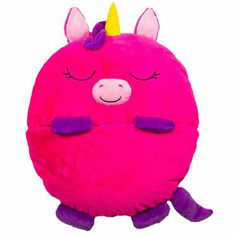 A Happy Nappers plüss hálózsák-párna egy puha és kedves jóbarát: egy cuki, állatfigurás, végig szétcipzározható, meleg hálózsák, ami könnyedén összehajtogatható kényelmes kispárnává. A praktikusan eltehető hálózsák patentok segítségével rögzíthető, hogy megőrizze párna formáját, akasztója segítségével pedig könnyen hordozható, így a gyerkőcök bárhová magukkal vihetik kedvenc kis pajtásukat. A 2 az 1-ben hálózsák és játékpárna kiváló minőségű, tanúsított, könnyű és lélegző szövetből készült, ami mosógépben is mosható és intenzív használat mellett is garantáltan tartós marad. A Happy Nappers 2 az 1-ben hálózsák – Pink Unikornis a kicsik kedvence alvótársa lesz! Monique, a pink unikornis az álmok varázslatos világába repíti a kis hercegnőket, legyen szó délutáni alvásról, kempingezésről vagy ottalvós buliról!