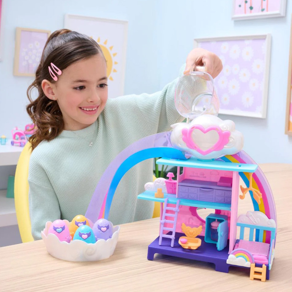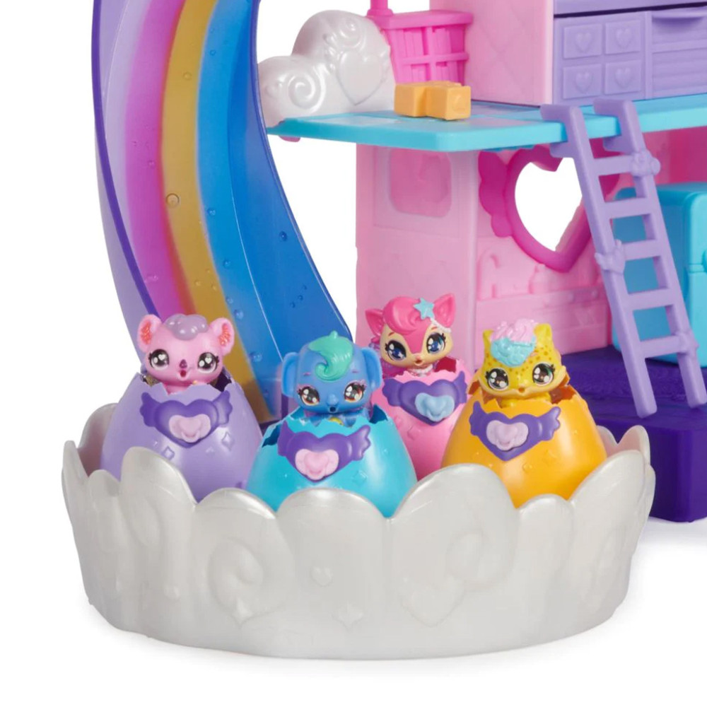 Tartalom: 4 db Hatchimals tojás, 1 db óvoda csúszdával és felhőmedencével, 13 db kiegészítő, használati utasítás.