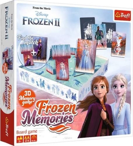A Jégvarázs 2 című film főszereplői és helyszínei között fejlesztheted memóriádat, illetve teheted próbára magad. A játék során találkozhatsz Elsa-val, Annával, Olaffal és az új barátokkal. A különleges 3 dimenziós memóriajátékban a játéktáblába csúsztatva találod a képeket. Találj meg minél több képpárt! Tartalom: 1 db játéktábla a dobozban 4 db játékostábla 24 db szereplőzseton 15 db játékzseton játékszabály Játékosok száma: 2-4 fő Játékidő: 10-20 perc Méret: 24,5 x 24,5 x 5,5 cm (csomagolás)