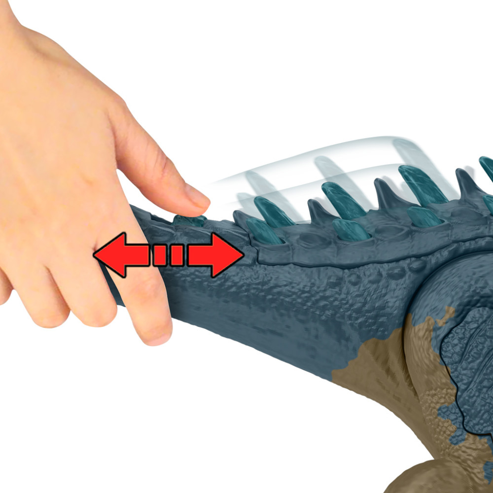 Félelmetes fegyverzettel és fejlett harci készségekkel rendelkezik a hátán lévő kereket mozgatva a gyerekek aktiválhatják a támadó funkciót, fel-le mozgatják a fejüket és rémísztő harciüvöltést hallatnak, a farkán lévő gombbal pedig a tüskéket aktiválhatják.