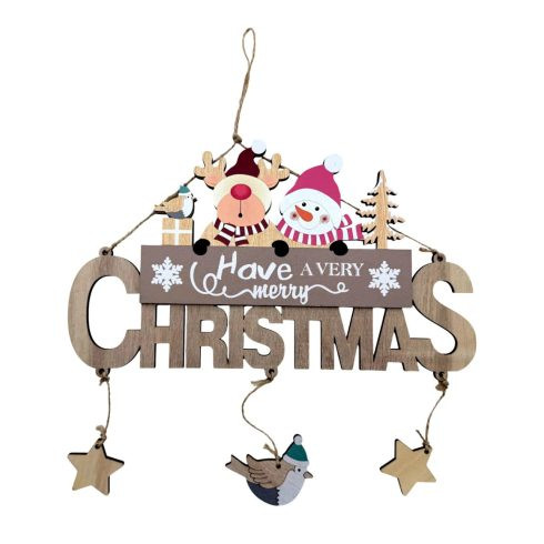 Ez a 29 x 17 cm-es fából készült Merry Christmas ajtódísz vidám és barátságos kiegészítője lesz az ünnepi dekorációnak. A kedves Télapó, a hóember és a rénszarvas figurák mosolyt csalnak mindenki arcára, miközben a karácsony meghitt hangulatát hozzák el otthonodba. A természetes fa alap és a színes, gondosan kidolgozott részletek együtt egy igazán látványos, mégis harmonikus díszt alkotnak.