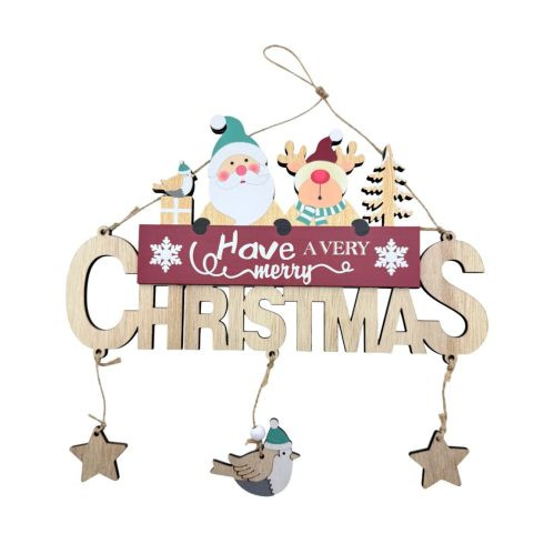 A felirat fölött elhelyezett aranyos figurák, a hópelyhek és a kis függőcsillagok játékos mozgása még különlegesebbé teszi a dekorációt. A zsinóros akasztó segítségével könnyedén felhelyezhető ajtóra, falra vagy akár ablakra is, így bármelyik helyiségben azonnal karácsonyi hangulatot teremt.