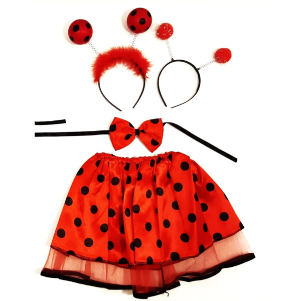 Katica jelmez kiegészítő 3 részes, gyermekek részére. Tartalma: szoknya,  fejdísz, nyakkendő.