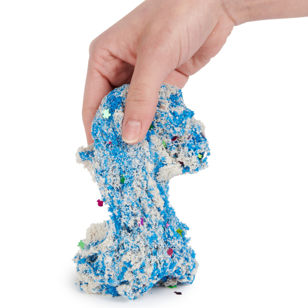 Tartalom: 1 db henger, 1 db formázó eszköz, 113 gramm 2 színű kinetikus homok, konfetti.