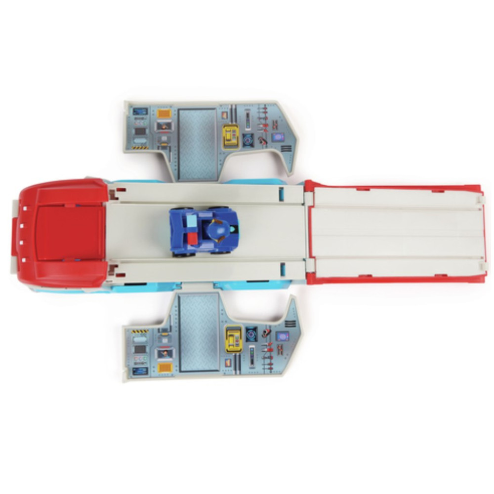 Megérkezett a Kutyiosztag Járőr! A teherautó a filmben látható jármű pontos mása, ráadásul még átalakulásra is képes. Tegyétek Chase-t a vezetőfülke tetejére – ez bekapcsolja a hátsó rámpát és a falakat, hogy több járművet is tárolhassatok a járőrautóban. Ezeket után nincs más hátra, gurítsátok le a járműveket a rámpán, és indulhat a mentés!
