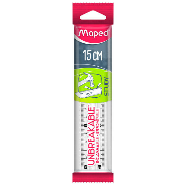 MAPED törhetetlen, átlátszó vonalzó, két oldalán könnyen olvasható számskálával. Hossza: 15 cm.