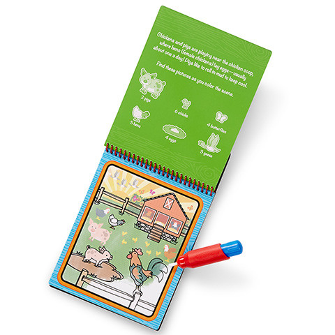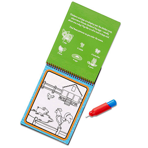 Farm állatok színező készlet – vízzel színező tollal a Melissa & Doug-tól! A szettben 4 db különböző, farm ál latos kép et találsz, izgalmas jelenetekkel, grafikákkal, valamint 1 víztartályos toll at, amellyel a képekre színezhetsz! A kreatív készlet különbözik minden színezőtől, amelyet eddig próbáltál. Ehhez ugyanis nem kell más, csak egy kis víz ! Töltsd fel a tollat vízzel, majd válaszd ki a 4 kép közül azt, amelyik a legjobban tetszik és kezd a színezést: azaz érintsd a tollat, és így a vizes hegyét a képekhez, és figyeld, ahogy életre kelnek, pompás színekkel telnek meg! Ha vársz egy kicsit, amíg a víz megszárad , újra nekiláthatsz a színezésnek!A Melissa & Doug kreatív készleteivel már az akár legkisebb gyerekek is bátran kibontakozhatnak, sőt fejlődhetnek: a játék fejleszti a finommotorikát és a későbbiekben a helyes ceruzafogást, a szem-kéz koordinációt, a kézügyességet és a kreativitást ! Nem beszélve arról, hogy a kis füzet segítségével megismerkedhetnek a farm állataival . Kreatív Melissa & Doug készletek a legkisebb korosztálynak! M érete: Mérete: 25 x 16 cm Tartozékok: