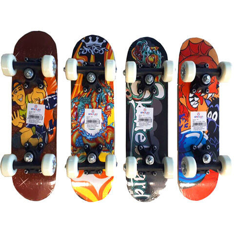 A Mini Board skateboard nagyszerű választás gyermekek, kezdők, vagy a mini deszkázást kedvelők számára. A deszka kiváló minőségű és ellenálló anyagból készült, amely többféle mintával kapható. Kis méretének köszönhetően könnyen szállítható kézben, de akár táskában, hátizsákban is. A Mini Board menettulajdonságát a 608Z és a PVC kerekek biztosítják. Technikai adatok – Skateboard Mini Board: vonzó minta a deszka alsó részén a skateboard mérete: 43 cm x 15 cm x 11 mm  csapágyak: 608Z tengely: 3,5″ PVC  kerekek: 50 x 30 mm, PVC max. teherbírás: 50 kg  a skateboard súlya: 1 kg  a legkisebb gyermekeknek, 3 éves korig ajánlott