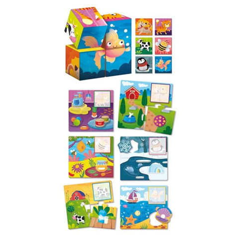 Montessori baby fa mesekocka -Állatok és élőhelyeik