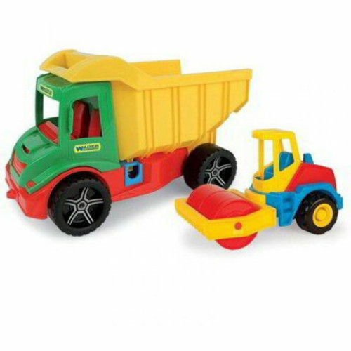Közepes méretű, kicsiknek ajánlott, hordozható, színes multidömper dömper és úthenger. Wader minőség! A dömper mérete 38 cm, az úthenger mérete pedig 24 cm. Javasolt életkor: 3 – 6 éves korig