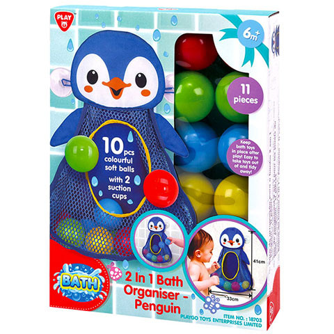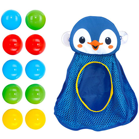 Egy különleges fürdőjátékot szerezhetsz most be otthonra, kisbabád számára, melyet pancsolás közben használhat majd a kádban. A fürdőjáték egyszerűen használható, két tappancs segítségével helyezhetjük fel a csempére vagy akár a kád szélére is, és már kezdődhet is a móka. A hozzá tartozó 10 db színes labdát a pingvin hasán lévő lyukba kell dobálni, de a labdák önállóan is remek szórakozást nyújtanak. A pingvin mérete 41 cm x 33 cm, mely elég nagynak mondható, így probléma nélkül lehet majd vele játszani.