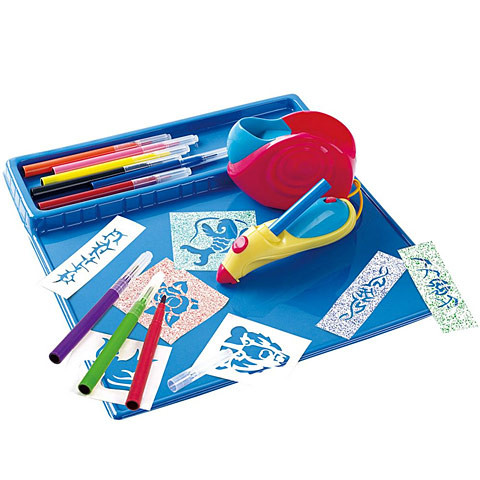 A tetováló stúdió remek szórakozást nyújt azoknak a kreatív gyerekeknek, akik mindig is szerették a tetoválós matricákat. A kompresszoros játék színes festékszóró ceruzával működik, a mintákhoz pedig szuper sablonok lesznek a gyerekek segítségére. Helyezd fel a sablont gyermekednek a kívánt testfelületre, majd nyomd meg a festékszórón lévő gombot, és meglátod, hogy egy pillanat alatt hogyan varázsolsz menő tetoválást egy mozdulattal. A tetoválás stúdió készletéhez különböző színű festékfilceket találsz a dobozban.