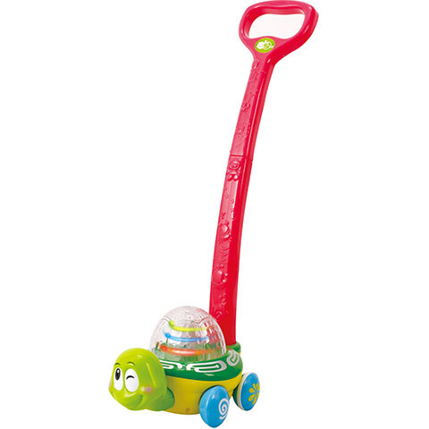 Ha kisgyermekednek keresel egy olyan járássegítőt, mely megtanítja neki, hogyan álljon és kezdjen mozogni stabilan, akkor a legjobb helyen jársz. A tologatható teknős hanggal és fénnyel szórakoztatja a babákat, így a járás tanulása móka és kacagás lesz. A színes, vidám arccal megalkotott teknős mozgatható feje forog, miközben a kicsik tolják a fogójánál fogva, átlátszó műanyagból készült páncélja pedig színesen villog és dallamot játszik le. Mivel a hang-, és fényhatásokhoz a játékot tolni kell, a gyerekek könnyedén ösztönözhetőek járásra, miközben az remek játékélményt nyújt nekik. A tologatható teknős hang-, illetve fényeffektjeihez 3 db LR6 AA elem szükséges.