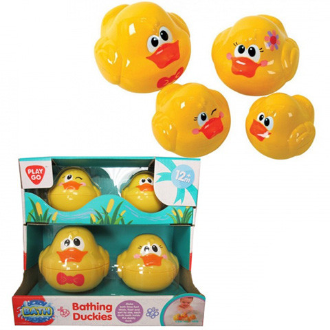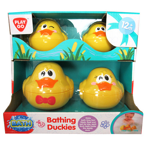 A Playgo kacsa családja csak arra vár, hogy együtt pancsoljon a gyerekekkel a fürdőkádban. A kacsa apuka csokornyakkendőt visel, a kacsa anyuka feje virággal díszített, a kislány kacsa kacsint, a kisfiú kacsa pedig mosolyog. A játék kacsák lebegnek a vízen, kidolgozásuk igényes, aranyos arcocskájuk pedig játékra hívja a gyerekeket. A kacsák szétszedhetők, és matrjoska baba-szerűen egymásba tehetők, ezáltal kis helyen tárolhatók.