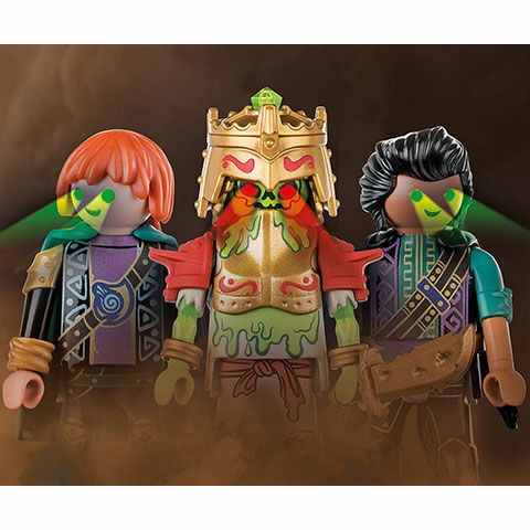 Sal’ahari Sands csillogó temploma az, amit a hátborzongató csontváz harcosok otthonnak neveznek. A zombi hadsereg a félelmetes Sul’thanath csontvázkirály vezetésével már a következő támadásra készül Novelmore ellen. Az élőhalottak nem félnek semmitől és senkitől. Ha valaki meg meri közelíteni a templomot, a csontváz ágyúból koponya golyózáporral fogadják őket. A harcosok minden csata előtt feltöltik az energiájukat, ehhez a templom közepén lévő varázslatos forrásra állnak, és várják, amíg az izzó zöld nyálka teljesen feltölti testüket, és a szemük izzani nem kezd. Ezeket a félelmetes sivatagi harcosokat jobb, ha mindenki messzire elkerüli! A játékkészlet tartalmazza Sul’thanath csontváz királyt, valamint a két tanítványát, Omagus és Andowan varázslókat, a templom fény modulját, a csontváz ágyút, pókhálókat, fáklyákat és sok más kiegészítőket. A figurák fejében egy energiatároló egység található, amelyet a templom indukciós tekercsével lehet feltölteni, aktiválni, amitől a figurák szemei ragyogni kezdenek. Kor: 5+
