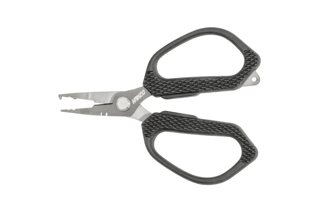 Praktikus többfunkciós olló, elsősorban pergető horgászoknak. Míg a rozsdamentes, fogazott vágóél tökéletes a fonott zsinórok tiszta felületet adó vágásához, addig a speciálisan kiképzett pofákkal a legapróbb kulcskarikák is könnyedén kinyithatóak. A puha markolat kényelmes használatot biztosít. Méreténél fogva elfér a mellényzsebben, de a markolat felett kialakított lyuk segítségével akár nyakba is akasztható. A pergetés mellett minden olyan módszerhez ajánljuk, ahol fonott zsinórt kell vágni.