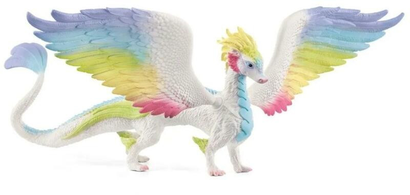 Ám amikor a Schleich® bayala® világból származó szivárványsárkányunk megjelenik, színes tollazata minden egyes szárnycsapással visszaveri a napsugarakat. Hangos kiáltása messzire elhallatszik.