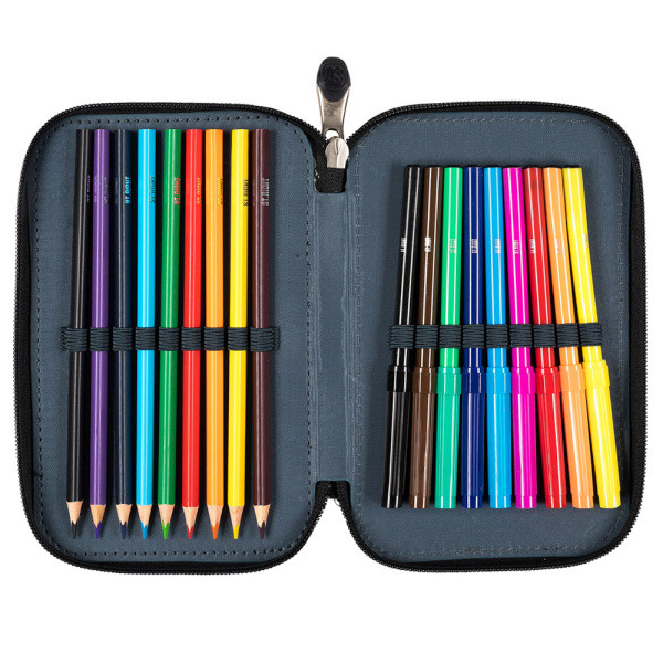 A szett tartalma: ergonomikus iskolatáska, felszerelt emeletes tolltartó , tornazsák.