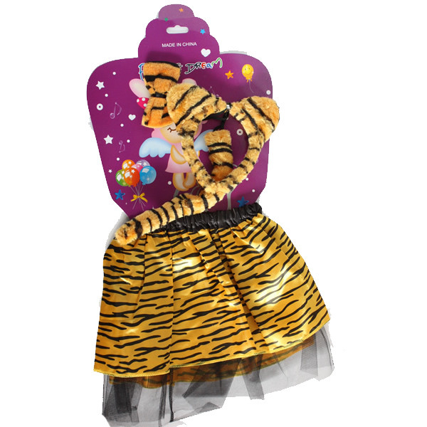Tigris jelmez kiegészítő. 4 db-os: fejdísz, nyakkendő, farok, szoknya.