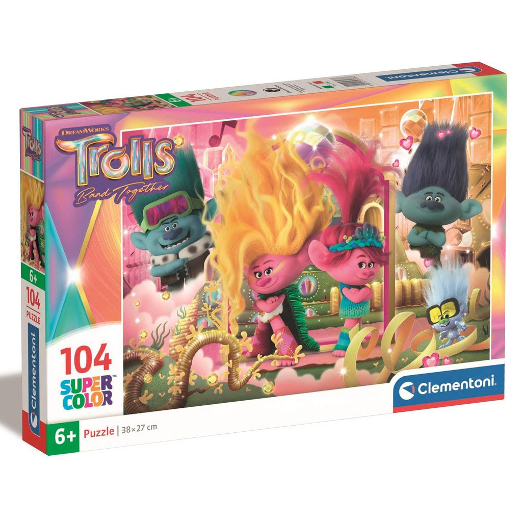 A Trollok 3. 104 db-os puzzle egy izgalmas és szórakoztató kirakó, amely a Trollok animációs film harmadik részének képeit tartalmazza. A kirakó azokat a kedvelt karaktereket és jeleneteket jeleníti meg, amelyeket a Trollok rajongók nagyon szeretnek.