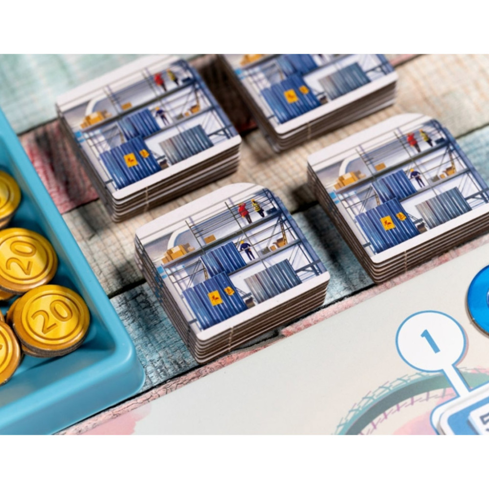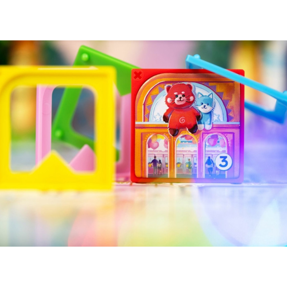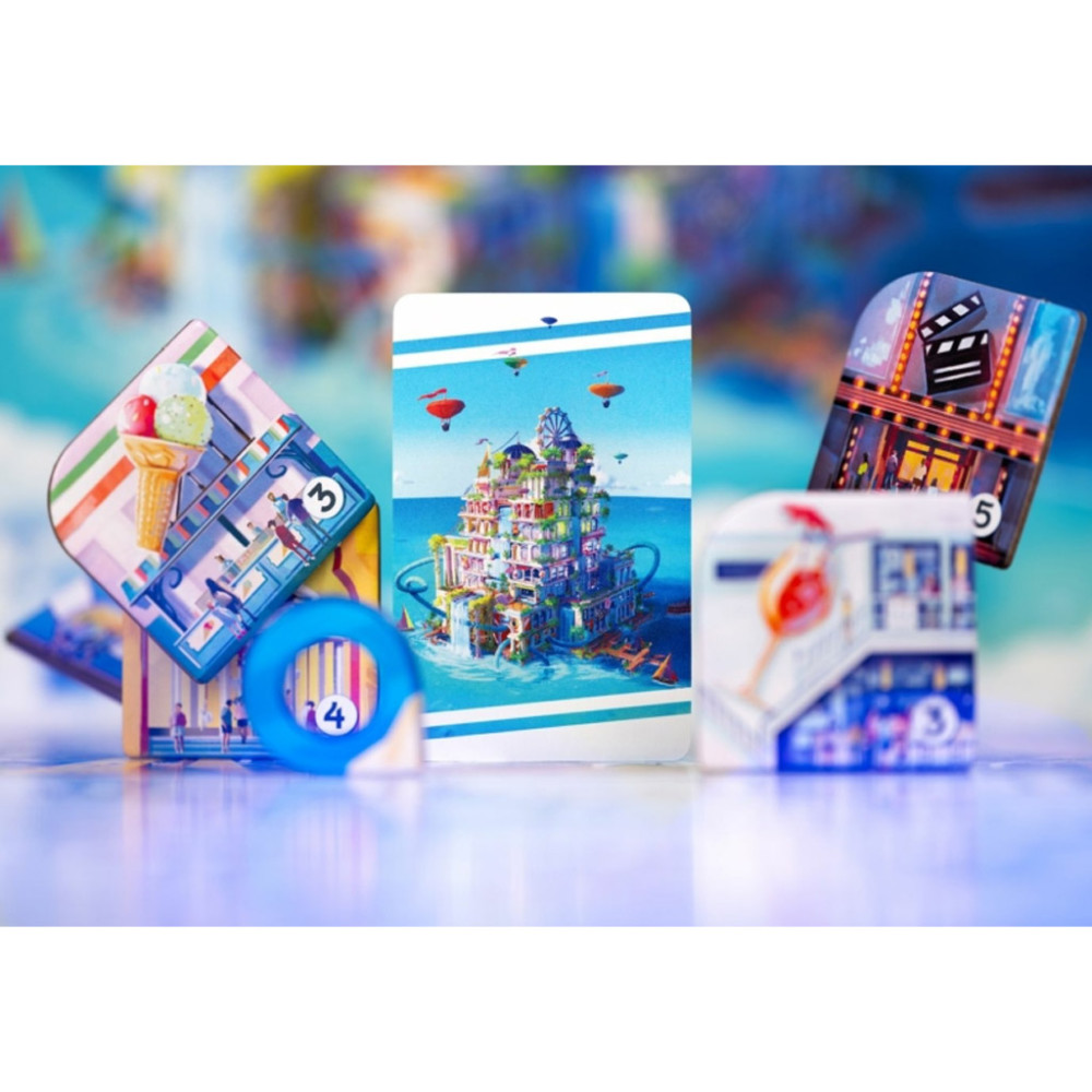 Gyönyörű grafikájú, rengeteg színpompás lapkát használó társasjáték.